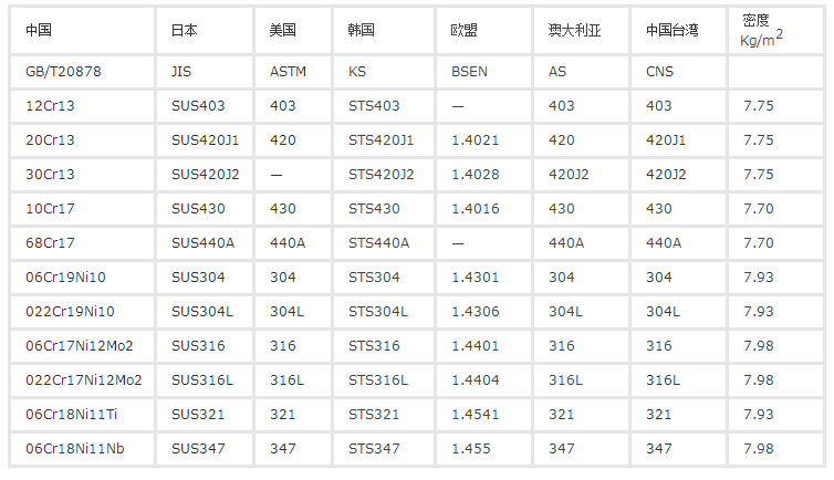 不銹鋼板標(biāo)準(zhǔn)鋼號(hào)密度表: